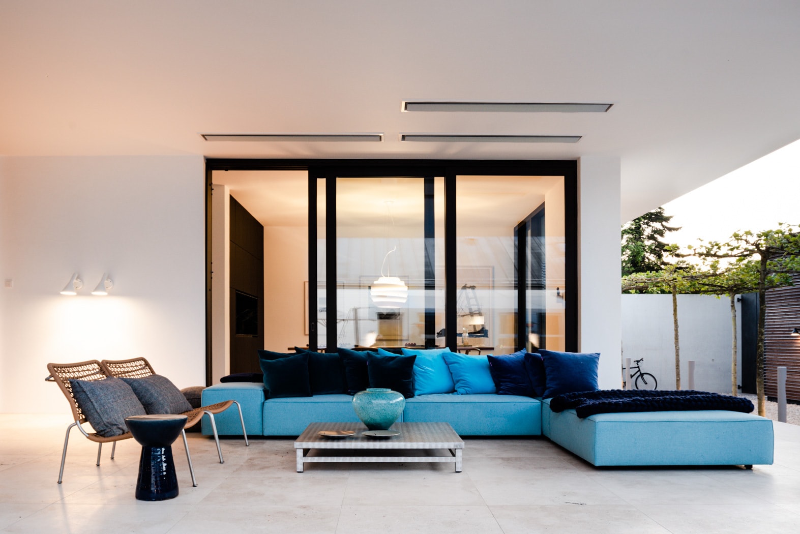 Der Thinktank fügt sich östlich an das Bürogebäude an und bildet die Fuge zum bestehenden Wohngebäude. Er dient als Rückzugsort, für Bauherren und Mitarbeiter und ist schallreduziert ausgebaut.