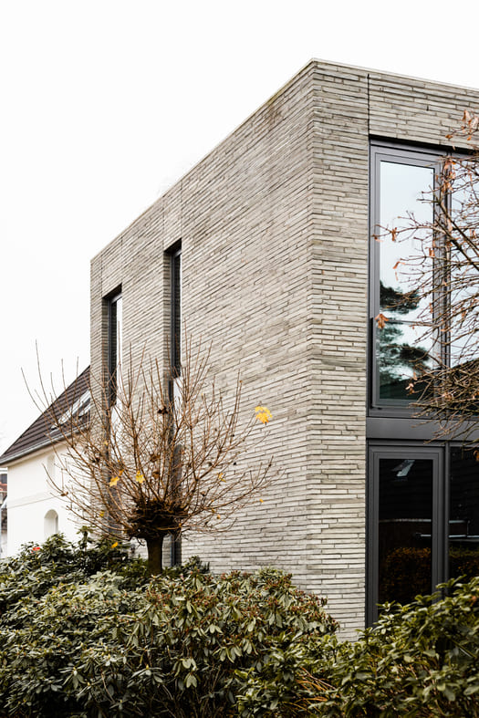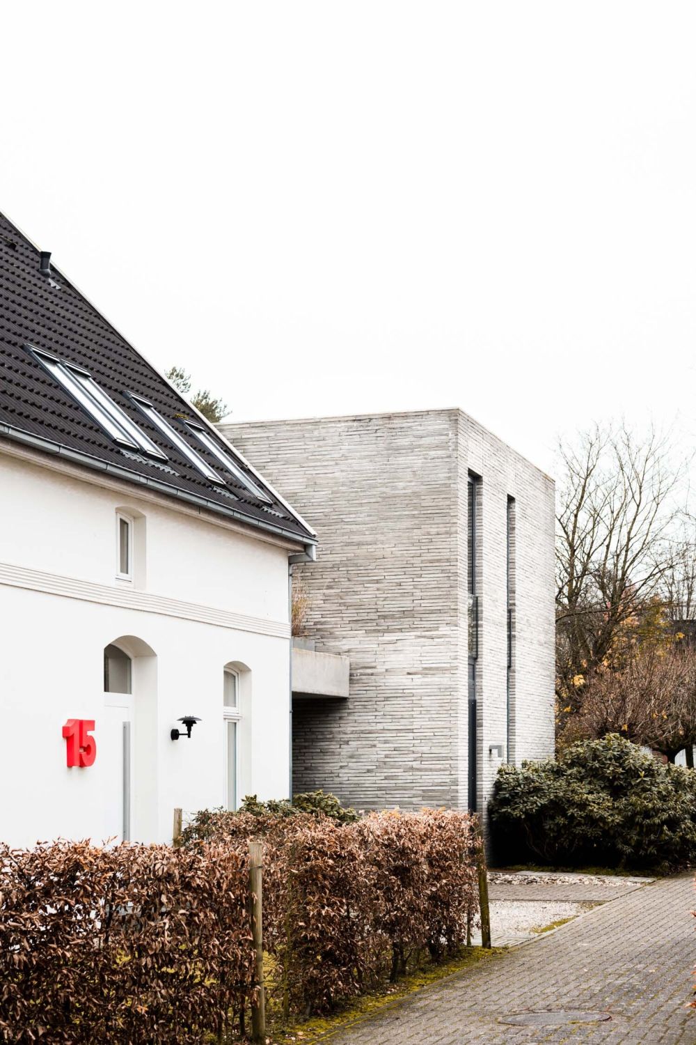 Eine Oldenburger Marketing-Agentur als Bauherrin hat das Giebelhaus energetisch saniert und an eine Dreier-WG aus dem Umfeld der Universität vermietet. Im hinteren Bereich – wo sich früher ein Hundehütten-typischer, kleiner, kaum genutzter Anbau anschloss – hat sie auf 140 Quadratmeter Fläche die zweite Wohneinheit entstehen lassen: ein Gästehaus für ein bis zwei Personen in strenger, monolithischer Kubatur.