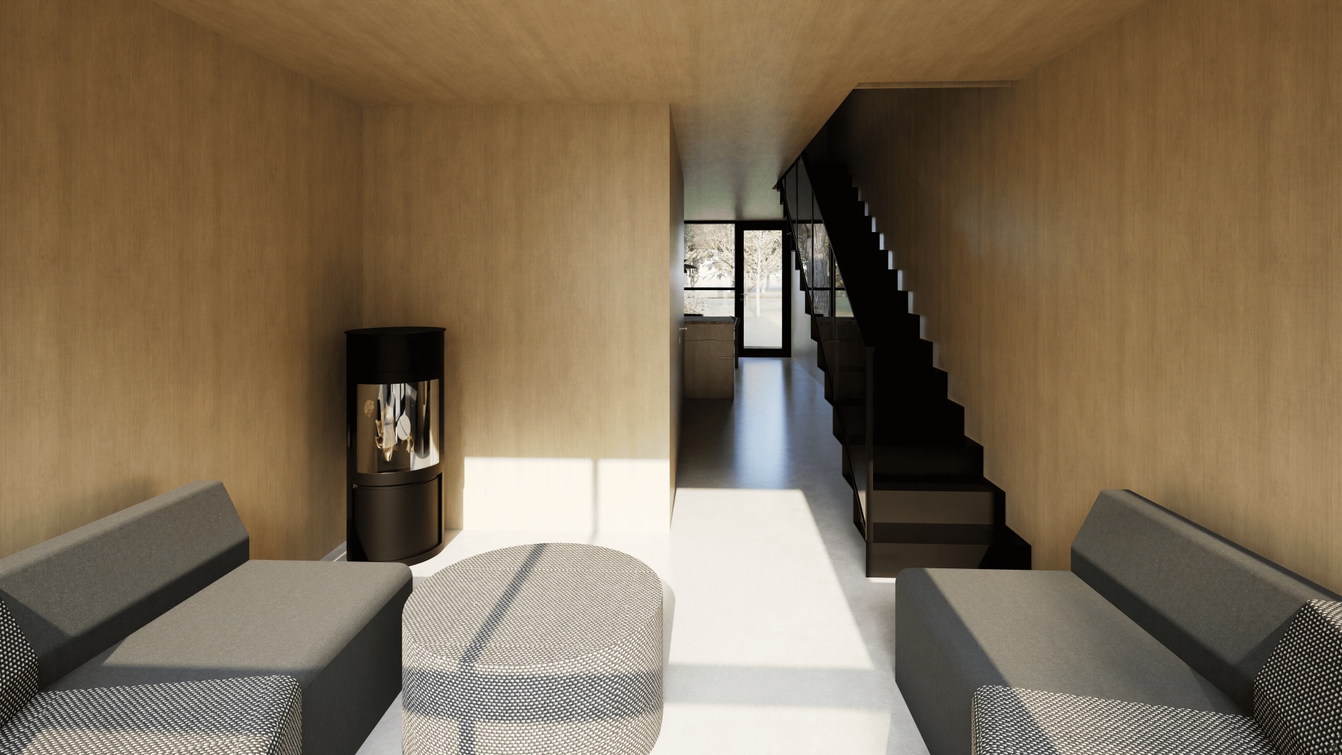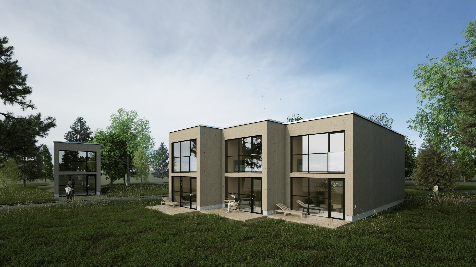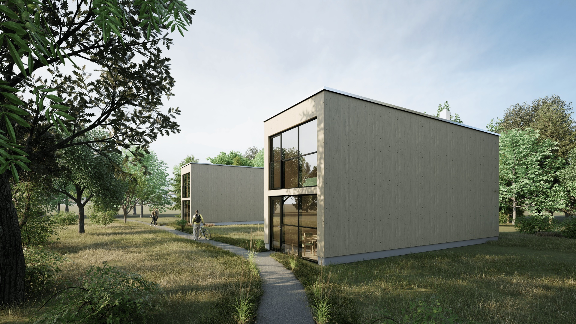 Entwurf: Entwicklung eines Modulhauses mit 75 m² Wohnfläche, zusammenschaltbar zum Reihenhaus
