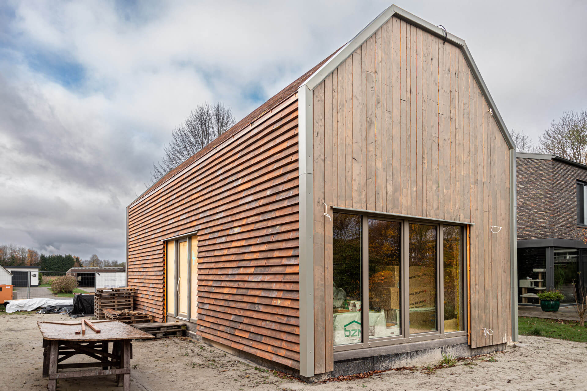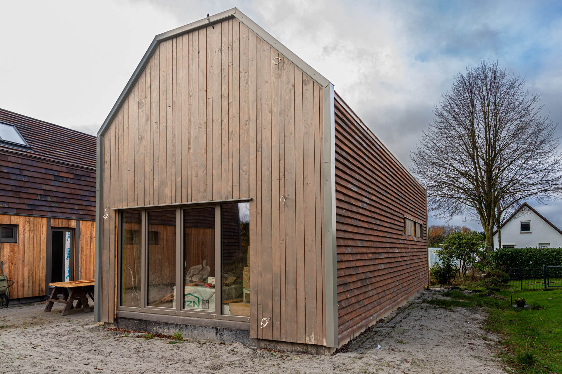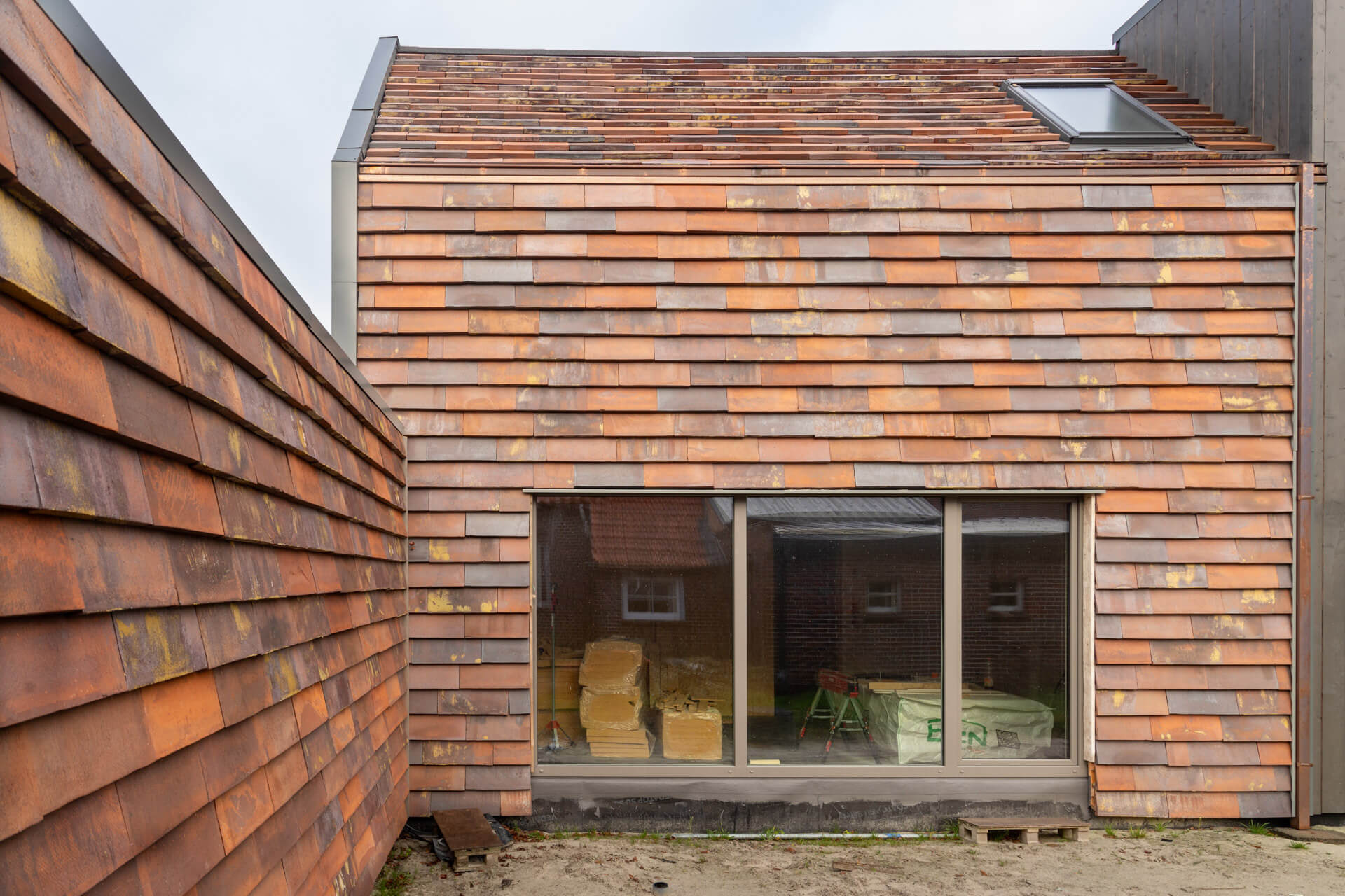 Die Fenster und Türen unterstützen die herrschende Materialität der ausgewählten Cover-Fassade, sowie des Verblendmauerwerks und bilden notwendige Akzente in und an der Gebäudehülle.
